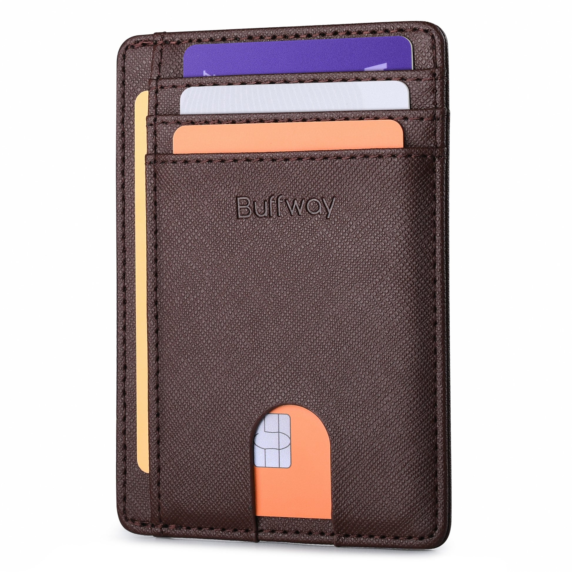 Portefeuilles Buffway Slim Minimaliste en cuir avec blocage RFID et poche avant pour hommes et femmes - Cross