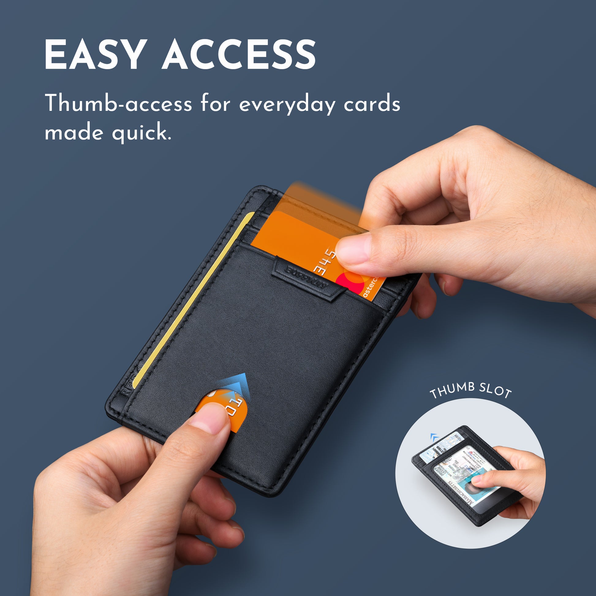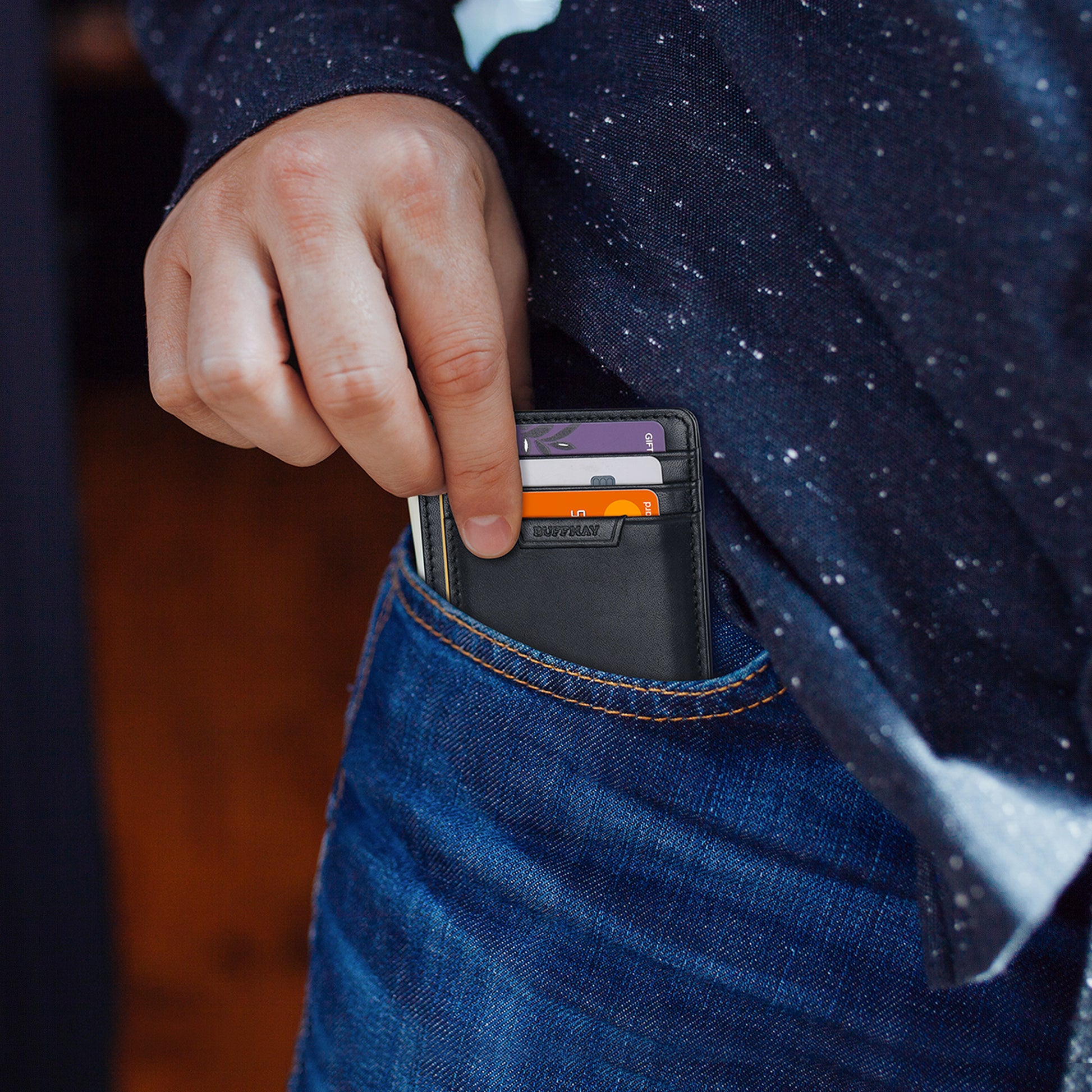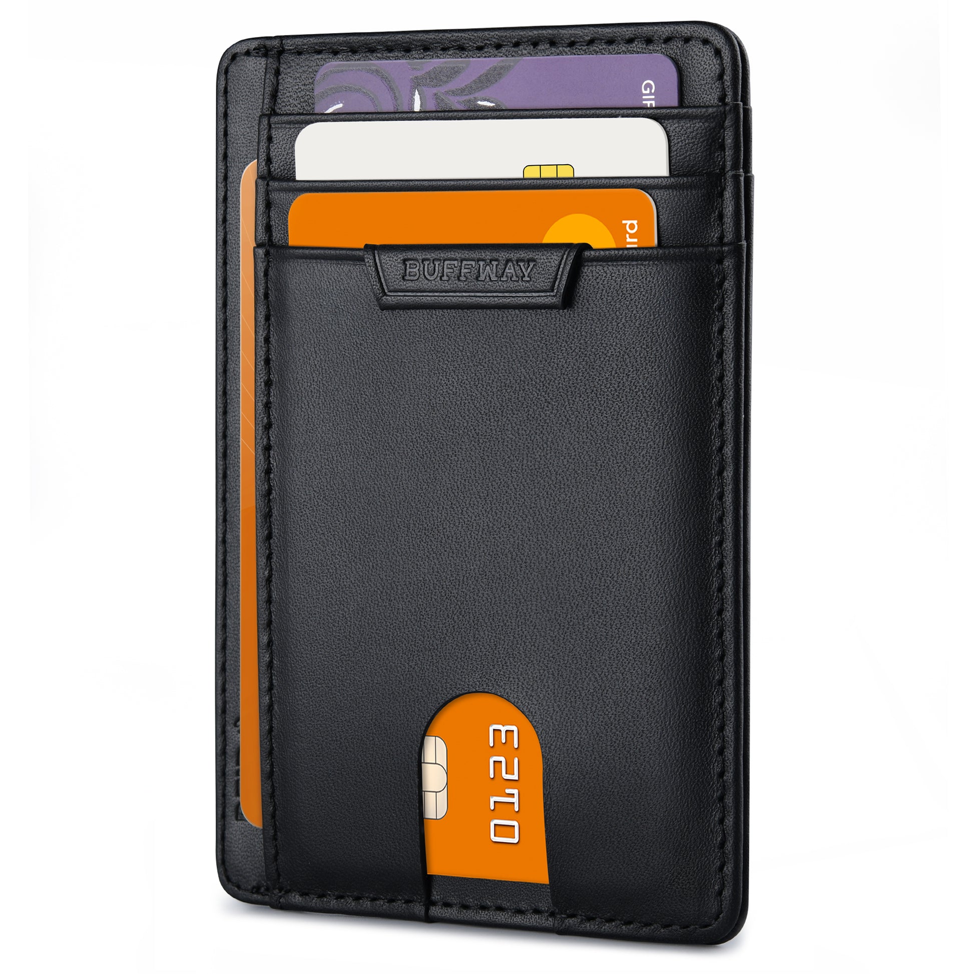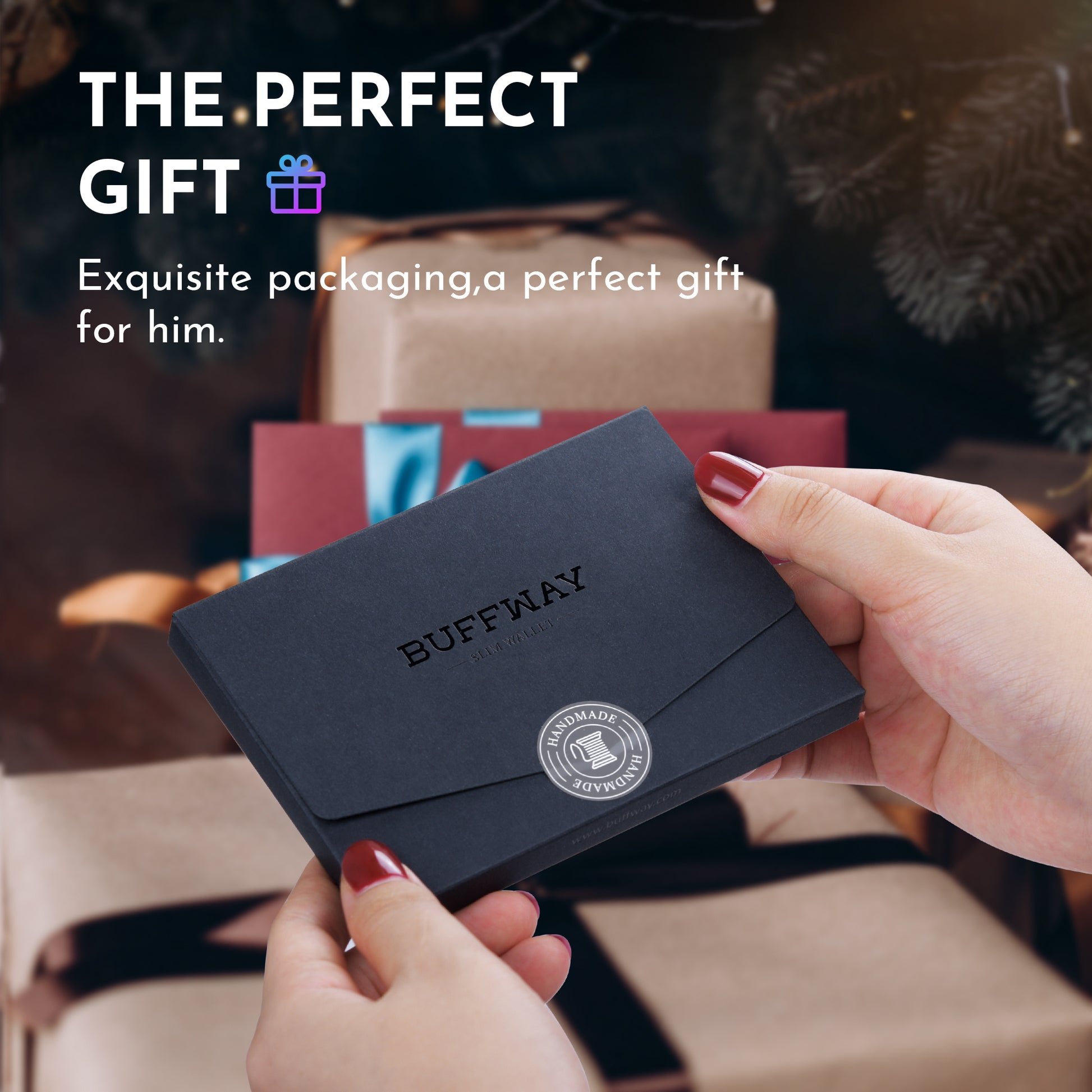 - NEW FEATURE DESIGN - The Minimalist wallet with a fingertip glide hole that easily and quickly accesses your favorite cards and The Buffway wallet is made of good workmanship with genuine leather, just fit your cards with no fear of anything falling out.