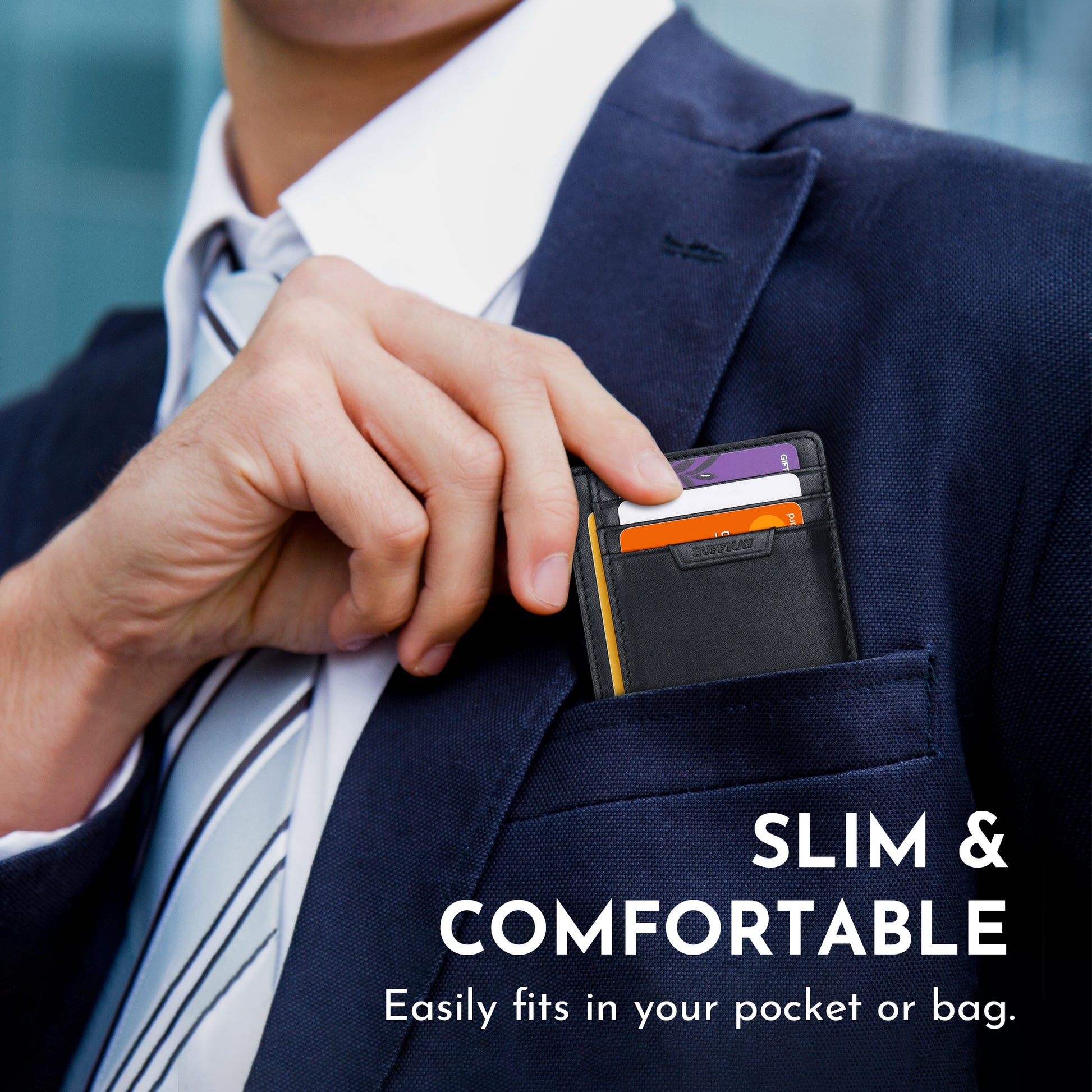 Buffway Slim Wallet for Men Women Minimalist Small Leather Front Pocket Wallets with RFID Blocking and Gifts Box - Bassa