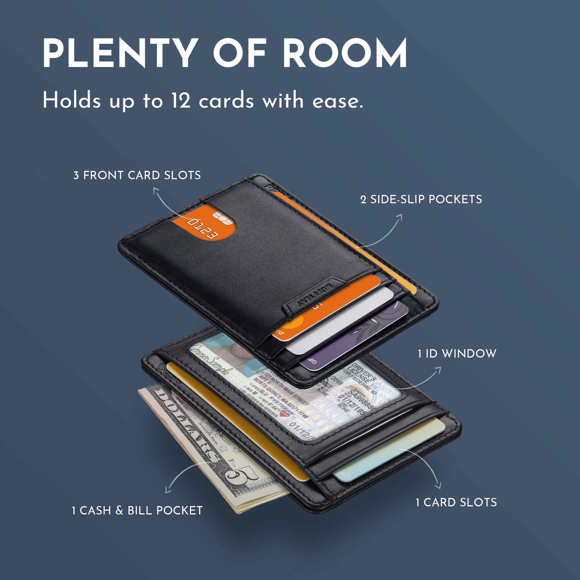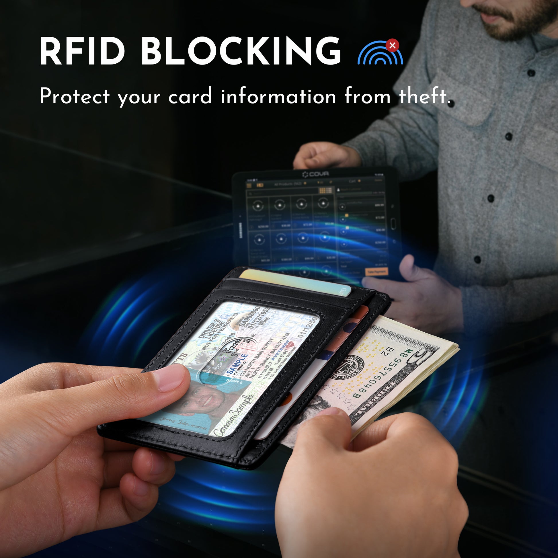 - RFID BLOCKING WALLET - Keeps your vital information secure, Our high-end RFID blocking insulation prevents electronic pickpocketing and identity theft, and your credit cards are protected from RFID theft (specifically 13.56 MHz RFID / NFC standard)